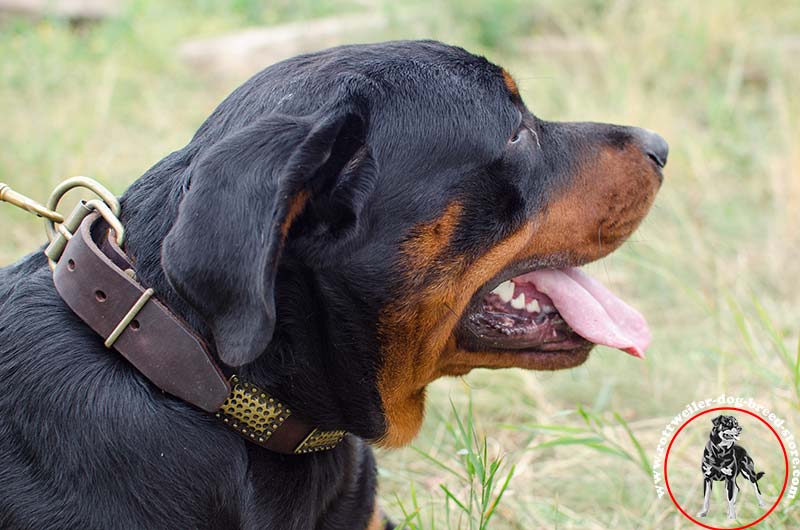 Model: C89##1018 Dog Collar with Vintage Brass Plates